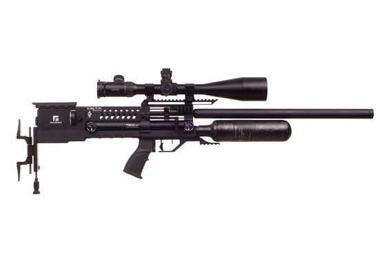 Reximex Meta is an air rifle in bullpup configuration, which at first sight impresses with its well-crafted and completely made of aluminium components construction. A distinctive feature of the air rifle is the widely adjustable boot.