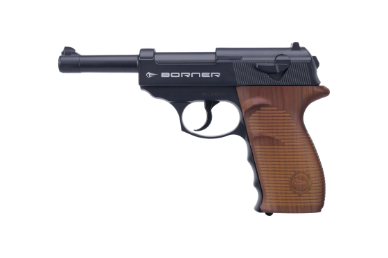 Borner C41 has been inspired by the famous Walther P38 from the Second World War. This air pistol is designed to shoot steel BBs in .177 caliber (4,5 mm), which makes it perfect for plinking.