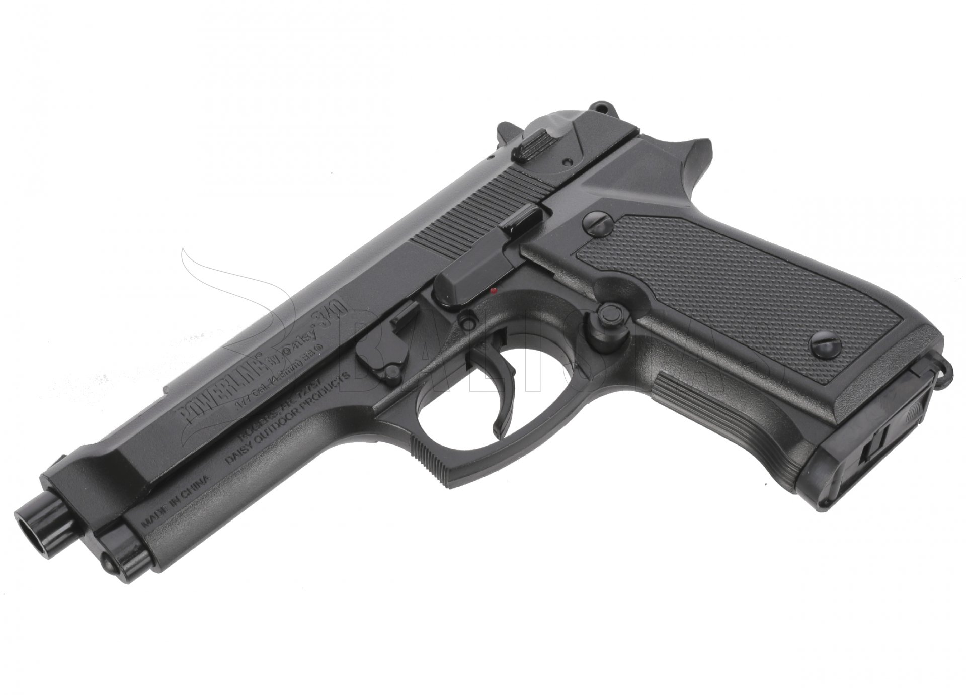 Daisy Powerline 340 is an air pistol repeater, which was clearly inspired by the legendary Beretta 92. The slide and the frame are both made of highly durable polymer, which makes it really lightweight (only 453 g). The smoothbore barrel is made of steel.