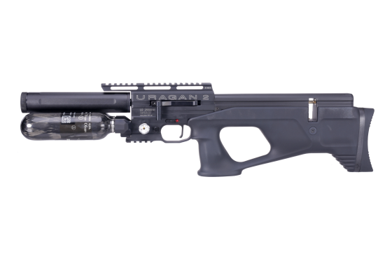 Uragan Compact 2 comes with a composite air cylinder with a capacity of 210 cc and maximum fill pressure of 300 Bar. The barrel is choked and has a length of 360 mm.
