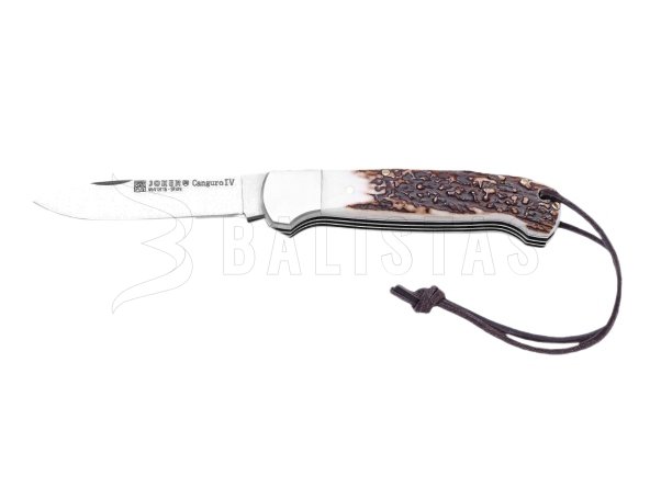 The knife is equipped with a proven back-lock lock, which prevents accidental closing, plus it can be easily operated with both the right and left hand. At the end of the handle there is a loop through which a leather strap is threaded. The hunting design is accentuated by tasteful deer antler wings.