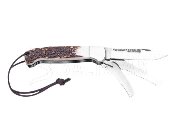 Multifunctional hunting knife IV NC128 with stainless steel blade 1.4116 has a handy saw, bottle opener and a blade for skinning game.