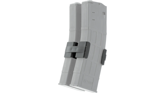 Polymer connector designed to fasten two Umarex T4E TC 68 RAM rifle magazines together, thus speeding up reloading.