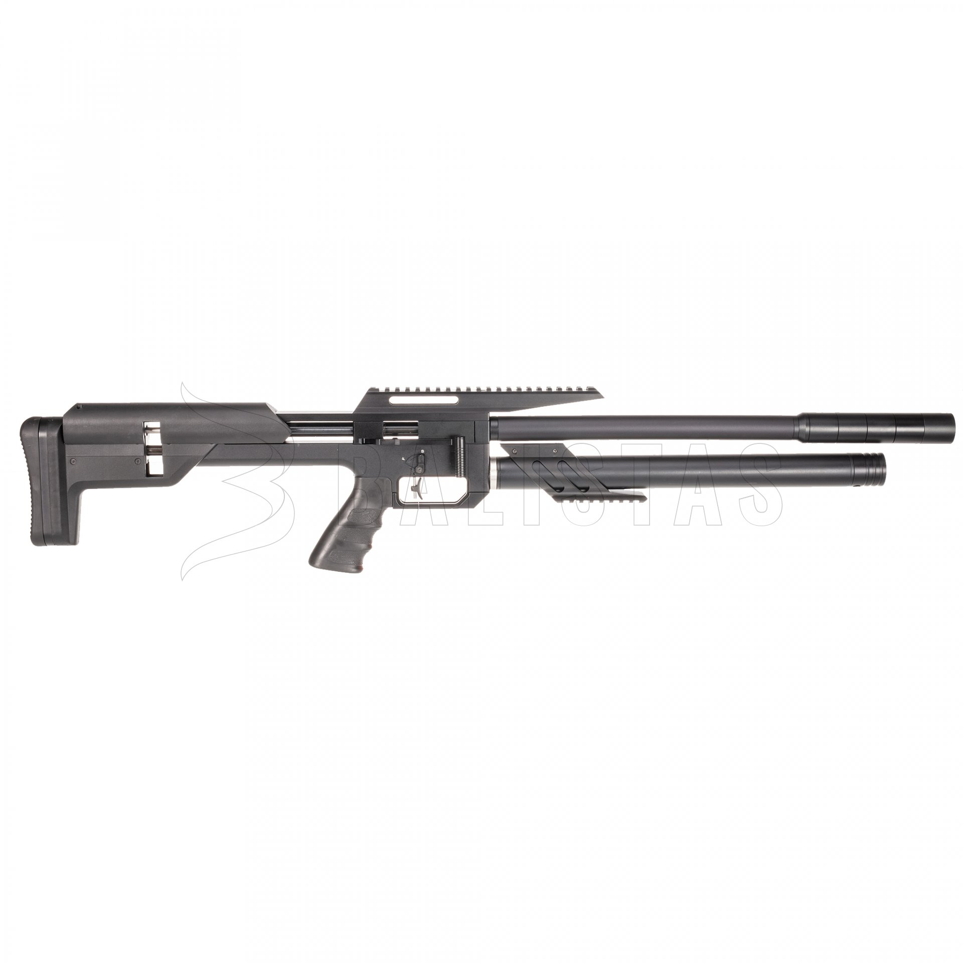 The 21,2mm Picatinny rail will allow you to mount a scope. Another mounting rail is placed under the air cylinder and serves as a place to attach a bipod or other similar tactical accessory.
