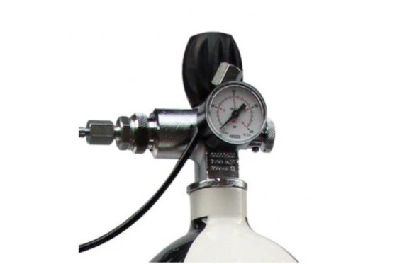The most advanced valve for Midland pressure bottles with a filling pressure of 300 Bar. Its design is equipped with an integrated pressure gauge for precise pressure monitoring and an improved vent and control handle.